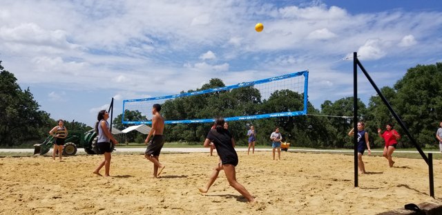 Sanctus Ranch has plenty of big open areas for your outdoor events. We also have a volleyball court, gaga-ball pit, large tents, picnic tables, fire pits, basketball and more.
